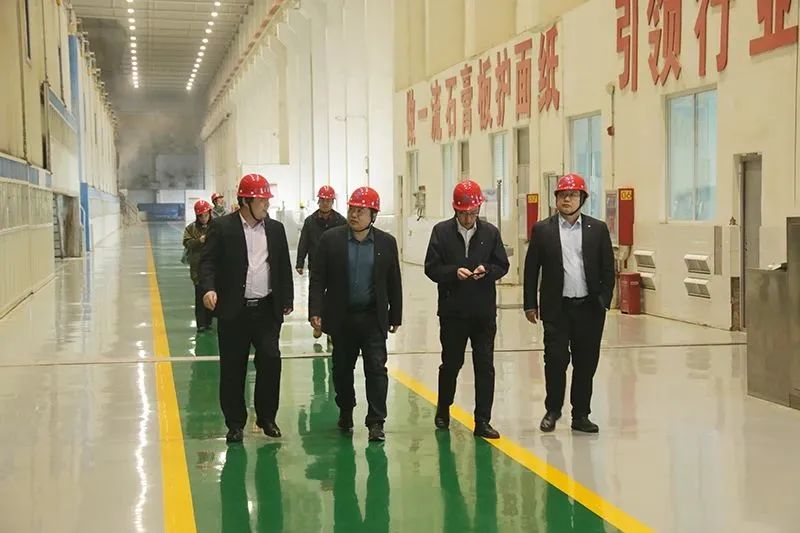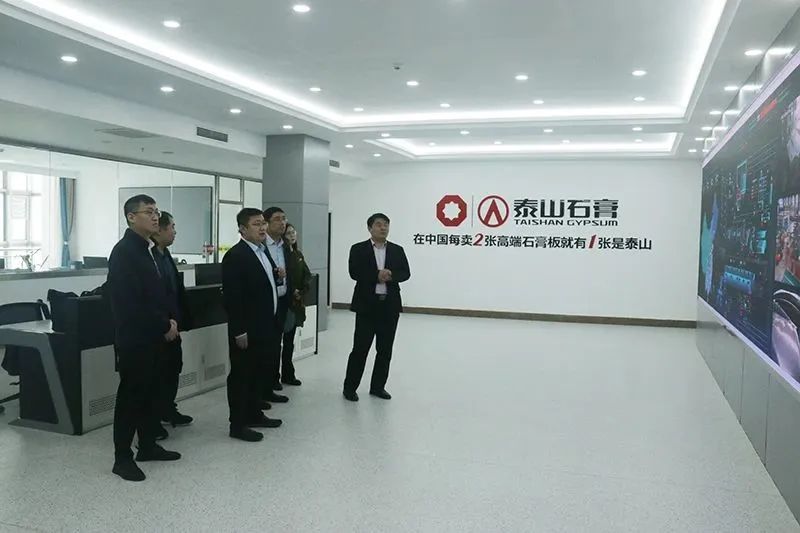 调研组一行分别参观了公司40万吨护面纸生产线、一分厂石膏板生产线、泰山石膏展览馆及泰山石膏数据运营中心。