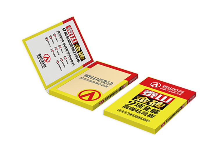 泰山金砖9项全能高端石膏板采用纯木浆高强黄金护面纸和高纯度石膏以及增强纤维,有效阻止石膏板产生开裂现象。